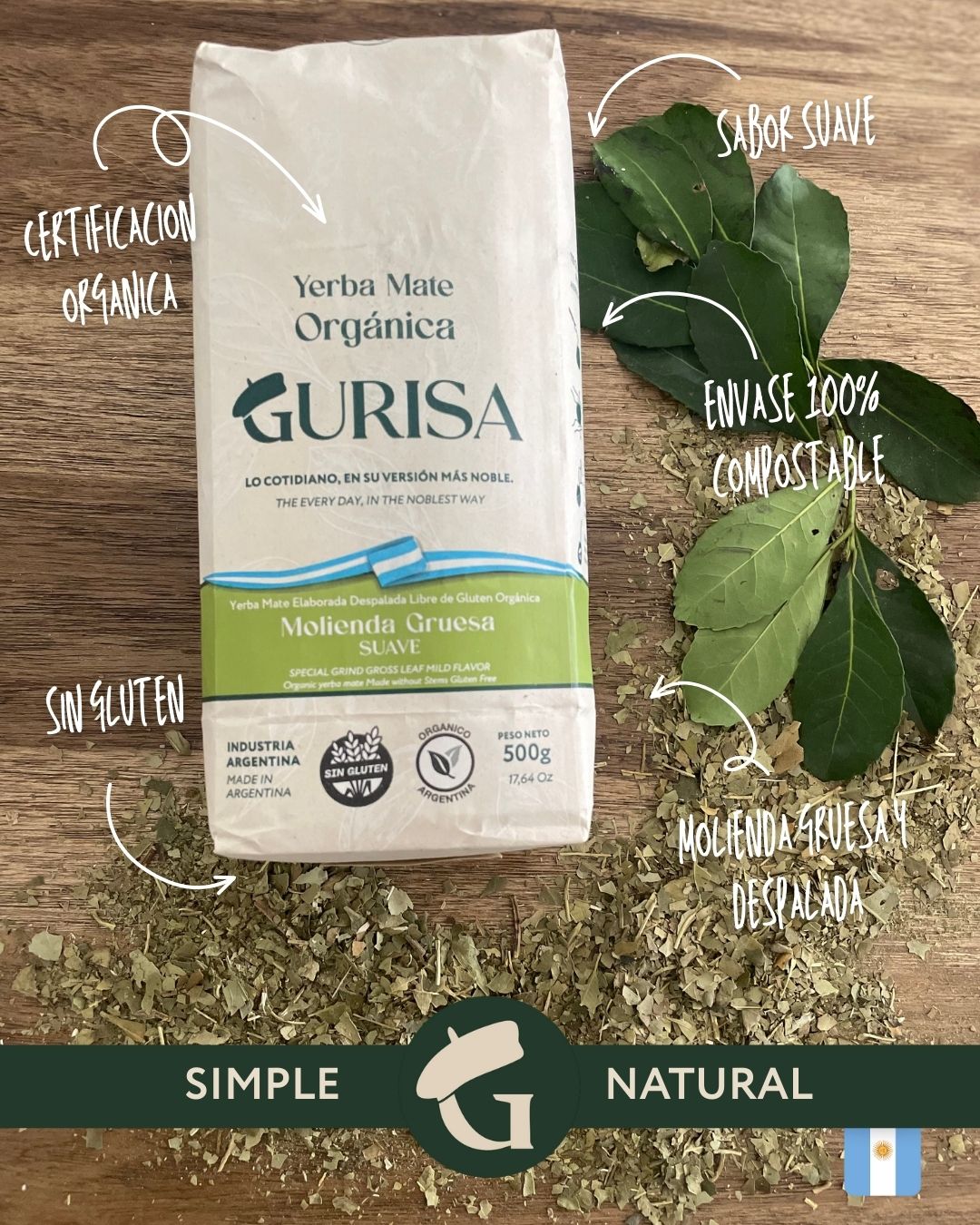 Esta composición ofrece un mate suave, liviano y de sabor estable, perfecto tanto para quienes recién comienzan a tomar mate como para quienes prefieren una experiencia más ligera y sostenida.